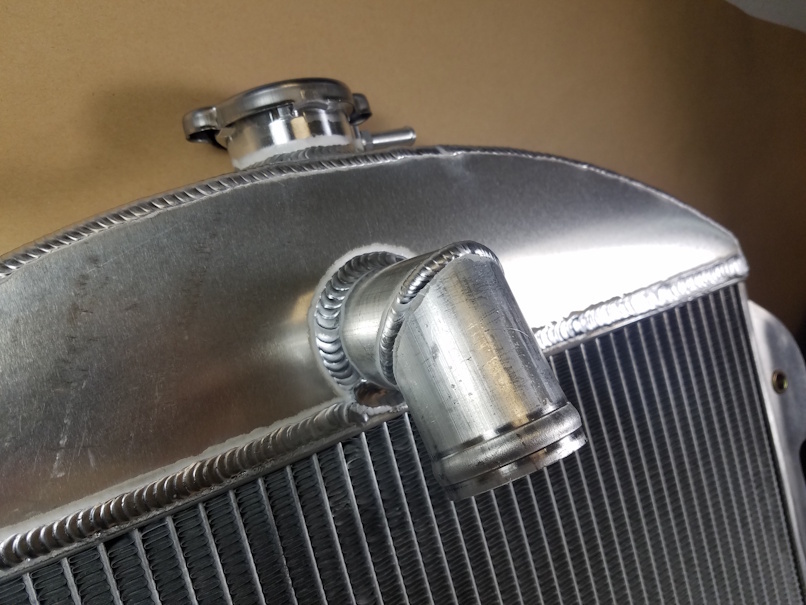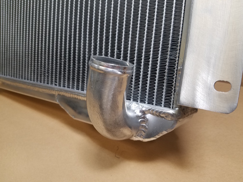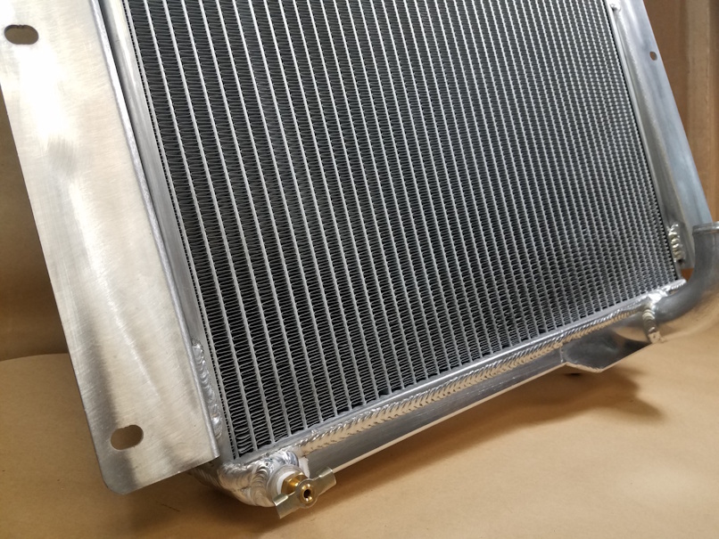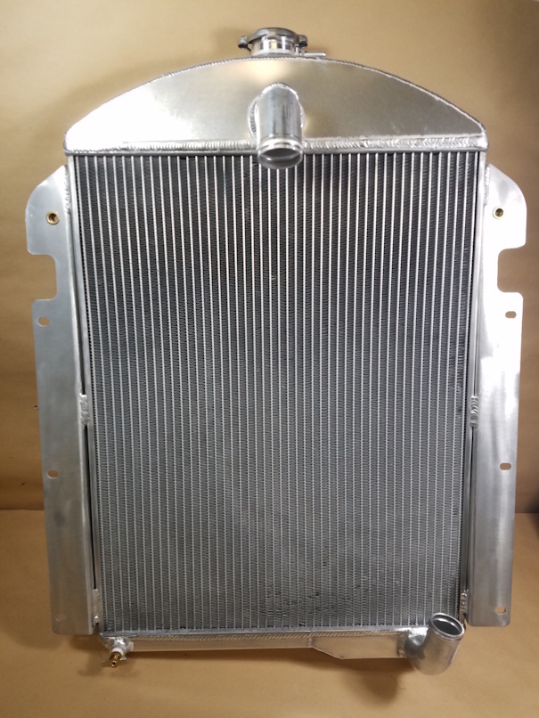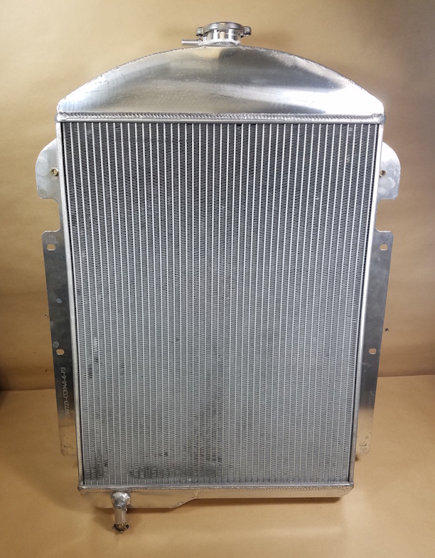 1939-1940 Pontiac Radiator assembly all models, 3 row aluminum 1 3/4″ inlet, 1 1/2″ outlet -Core dim 22 1/2″ high x 18″ wide, overall dim 28 1/8″ High w 22 1/8″ wide. The flange must be trimmed and redrilled to mount. ***Please Allow 3 Weeks for delivery.